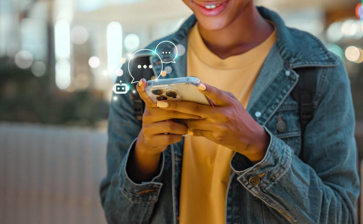 En AI-chatbot är ett program som du skriver till, ungefär som att chatta med en person. Ofta kan du också prata med chatbotten via en app på mobilen. Du kan ställa frågor, be om hjälp eller idéer – svar får du direkt. Exempel på chatbottar är OpenAI:s ChatGPT och Microsofts Copilot, men det finns även många andra.