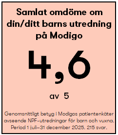”Vi har bara positiva erfarenheter av Modigo i Lund. Vi stod i kö till BUP i över två år, så när vi blev remitterade till Modigo, så blev vi jätteglada! Det gick lätt, snabbt och vi blev bemötta på ett väldigt professionellt sätt! Först ett läkarbesök hos Olof, sen ett besök med oss föräldrar, dagen efter besök med sonen för tester, och två veckor senare återkoppling. Toppenbetyg!!”